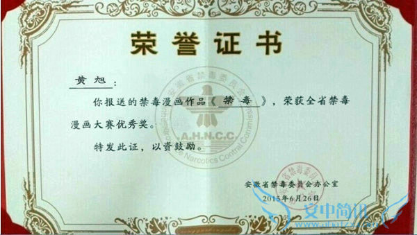 安丰高中黄旭同学获安徽省禁毒漫画优秀奖